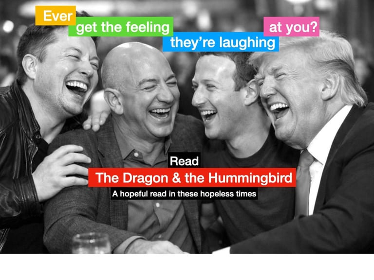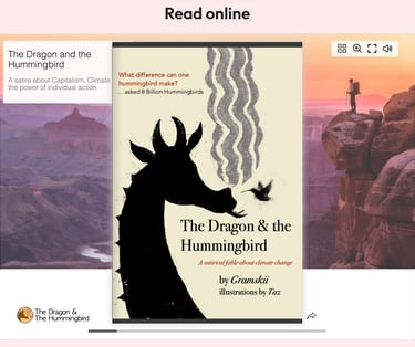 "Put aside your daily priorities for a while and read Gramskii's new book 'The Dragon & the Hummingbird'. So much more interesting than reality TV. THIS IS THE REAL THING. It's an entertaining yet foreboding tale about why our world is in its current precarious state; sprinkled with humour, coupled with scientific and historical references . Almost a book within a film within a film. It moves along at a cinematic pace to provide an explanation of how capitalism and greed is the lumbering beast that has created inequality, financial disaster and climate change. It's time to do something about it before it's too late. We can all help. Find out how by reading this inspirational book. It's free, so what have you got to lose? (Apart from your planet)."