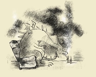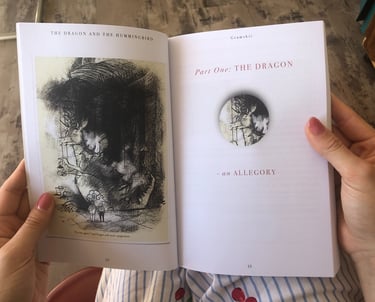 Part One: The Dragon opens as a darkly comic fable. Alice, a journalist-turned-reluctant corporate spouse, and her husband George, an idealistic environmental consultant, find themselves drawn into the orbit of K — the dragon at the heart of Komodo Industries. K is no metaphor: he is a literal, coal-chomping, fire-belching dragon in a suit, whose real power lies in his ability to cast a spell of glamour, wealth and status over those around him. George falls under K's influence, climbing the corporate ladder while Alice digs deeper into Komodo's catastrophic environmental malpractice. As George's transformation into a compliant corporate drone accelerates, Alice, inspired by their daughter Evie's love of The Brave Little Hummingbird, begins her own quiet resistance. Eventually, George awakens to what he has become, breaks free of the dragon's spell, and both he and K are forced to confront the consequences of their choices. The story ends not with a dramatic battle, but something more radical: personal responsibility.